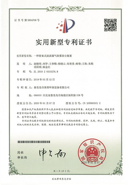 一種管束是渦流除霧除塵裝置