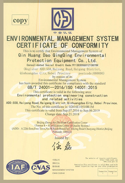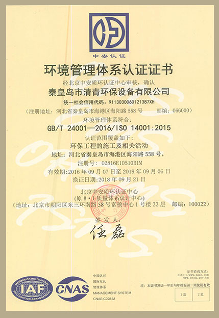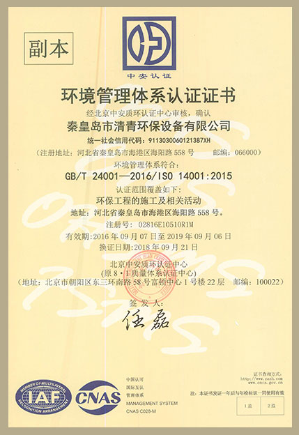 環(huán)境管理體系認(rèn)證正本中文